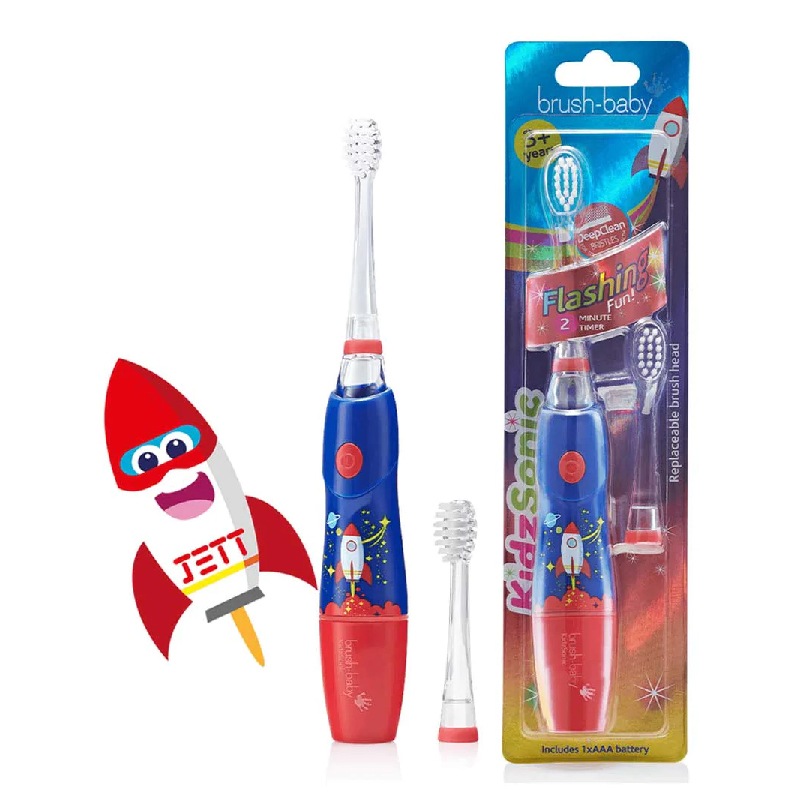 Brush-baby KidzSonic elektriskā zobu birste ROCKET 3+ Zoom Brush-baby KidzSonic elektriskā zobu birste ROCKET 3+ Produkta ID: BRB191/ZILA Ražotājs: Brush-Baby 22,40 € - + Add to cart Pievienot velmju sarakstamNoņemt no velmju saraksta Pievienot velmju sarakstam Prece pievienota grozam Brush-baby KidzSonic elektriskā zobu birste ROCKET 3+ x1 22,40 € Ir noliktavā4 in stock Produkta apraksts 2 minūšu gaismas taimeris (automātiski izslēdzas); Maza sukas galva – piemērota bērnu zobiem; DeepClean sari lieliski piemēroti jauktiem zobiem: Īsie sari attīra zoba virsmu; Garākie sari sasniedz zobus; Mazs viegls rokturis – ērts mazās rokās; 30 sekunžu pulsa atgādinājums palīdz iemācīt zobu tīrīšanu Komplektā 1x AAA sārma baterija (izmanto tikai sārma baterijas); 22 000 sonisko vibrāciju.