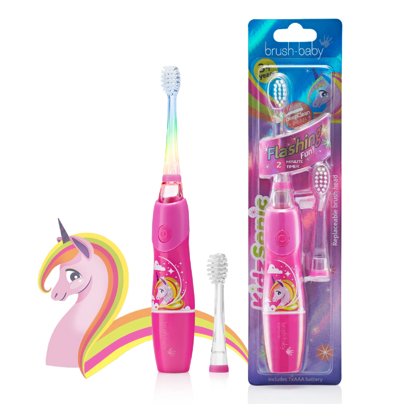 Brush-baby KidzSonic elektriskā zobu birste UNICORN 3+ Zoom Brush-baby KidzSonic elektriskā zobu birste UNICORN 3+ Produkta ID: BRB191/ROZA Ražotājs: Brush-Baby 22,40 € - + Add to cart Pievienot velmju sarakstamNoņemt no velmju saraksta Pievienot velmju sarakstam Prece pievienota grozam Brush-baby KidzSonic elektriskā zobu birste UNICORN 3+ x1 22,40 € Ir noliktavā8 in stock Produkta apraksts 2 minūšu gaismas taimeris (automātiski izslēdzas); Maza sukas galva – piemērota bērnu zobiem DeepClean sari lieliski piemēroti jauktiem zobiem: Īsie sari attīra zoba virsmu Garākie sari sasniedz zobus Mazs viegls rokturis – ērts mazās rokās 30 sekunžu pulsa atgādinājums palīdz iemācīt zobu tīrīšanu Komplektā 1x AAA sārma baterija (izmanto tikai sārma baterijas); 22 000 sonisko vibrāciju.